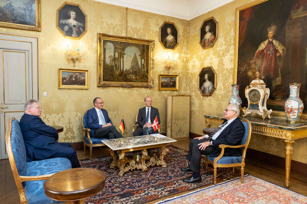 The Grand Hospitaller Joseph Blotz and the Secretary-General for Foreign Affairs Giampaolo Cantini received Gunther Krichbaum, Minister of State for Europe at the Federal Foreign Office and Member of the Bundestag, on a working visit to the Magistral Palace.