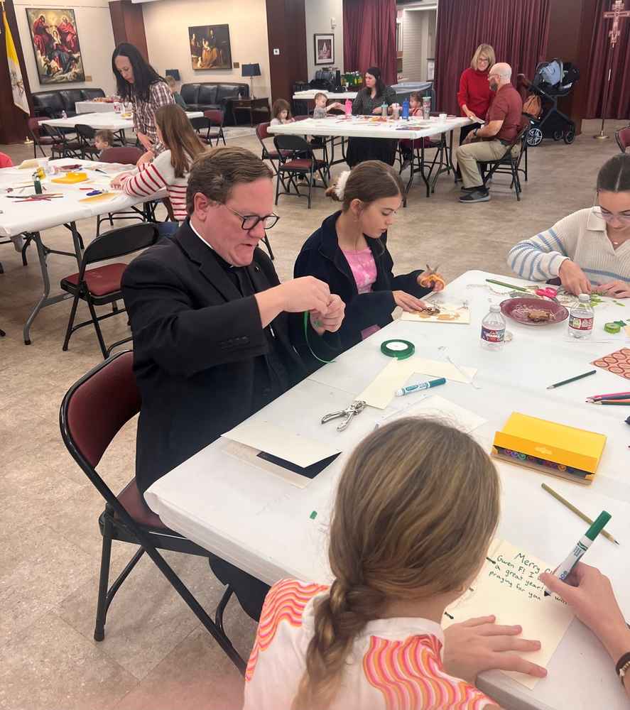 Following Father Harrington’s remarks, candidates Kim Boudreaux and Sarah Clement, both from Catholic Charities of Acadiana, explained that many of their “clients” (the homeless) go without seeing any family or receiving even Christmas cards during Advent and Christmas. Then, children, parents and grandparents set to work creating personalized, handmade Christmas cards to be delivered to the clients before Christmas. The Lafayette Region continues to be blessed through its relationship with Catholic Charities of Acadiana and the invitation to the region to serve their clients. Tuitio fidei et obsequium pauperum.