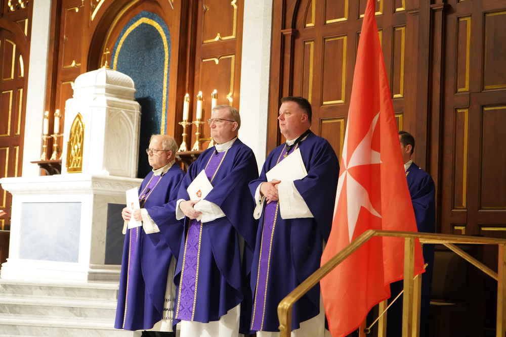 The Most Reverend Michael F. Burbidge, Bishop of Arlington and Conventual Chaplain ad honorem of the Order served as the Principal Celebrant and Homilist. Joining the Bishop from among the Order of Malta Chaplains were Reverend Andrew Fisher (Pastor of St. Ambrose Catholic Church) and Reverend Alexander Drummond (Pastor of St. Michael Catholic Church), who serve as Magistral Chaplains of the Order from the Northern Virginia Region. Reverend Joseph Rampino, Associate Chaplain of the Order, also concelebrated along with Very Reverend Patrick Posey (Rector of the Cathedral); Reverend Nicholas Barnes, Reverend Michael Weston (MC) and Deacon Malcolm D’Souza from the Cathedral.
