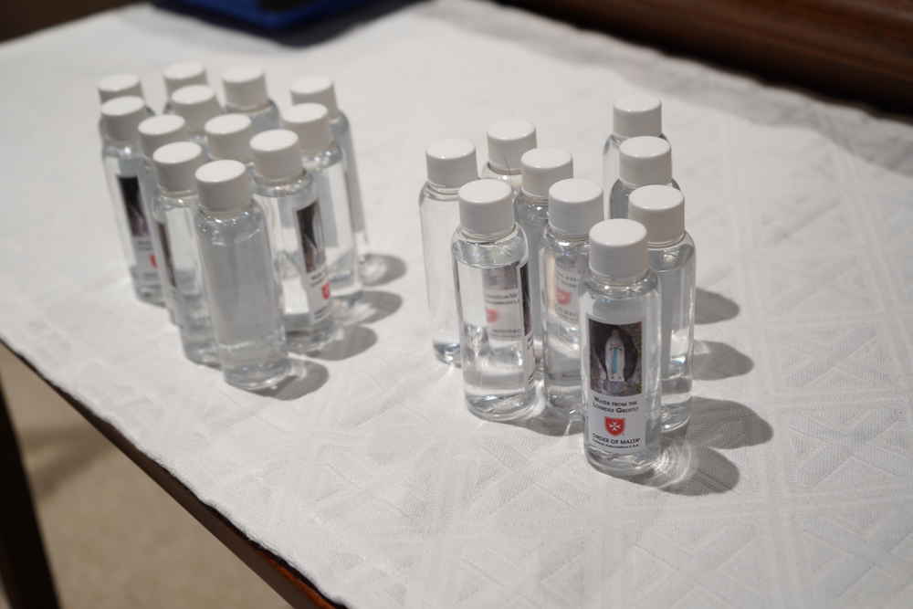 Hosting this annual Mass and Anointing of the Sick is a major work of the Order of Malta in the Northern Virginia Region, where the members bring the Lourdes Pilgrimage experience to the faithful of Arlington who could not otherwise travel overseas. To identify those in need of sacramental anointing during the Mass, members of the Order distributed special Miraculous Medals on blue ribbons. For children under seven and for those who have not made First Confession, members of the Order provided special Four-Way Medals on red ribbons, so they may receive a special blessing. At the conclusion of the Mass, small bottles of Lourdes water and prayer cards were given to all attending. The faithful were also invited to submit on-line or written prayer intentions, to be placed in the Grotto in Lourdes this May. Members of Order from around the world bring Malades (individuals suffering from illness) to this Marian Shrine every year for physical and spiritual healing.